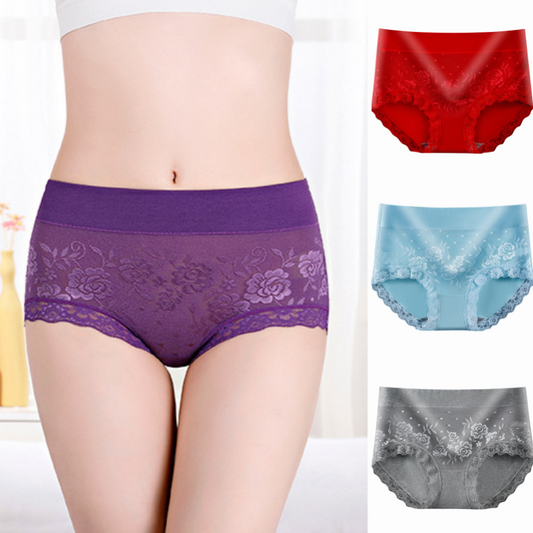 🔥📣【Купете 3, вземете 3 безплатно】Дамски памучни дантелени бикини с големи размери