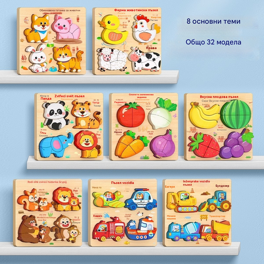 👧🏻🧩 Дървени 3D пъзели Монтесори за образование в ранна детска възраст
