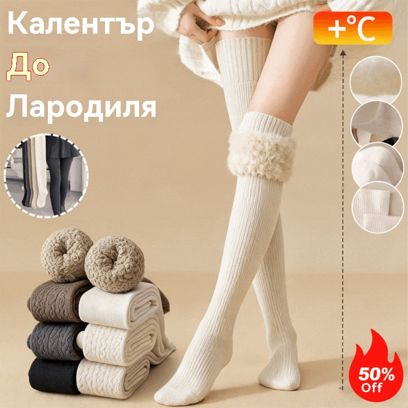 Дълги термо чорапи до бедрото|Дебели, топли и противоплъзгащи за есента и зимата
