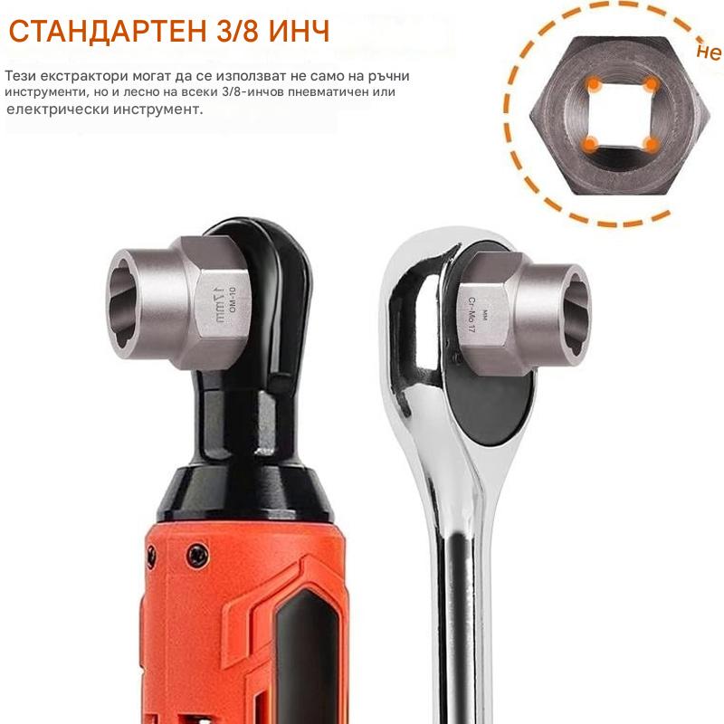Комплект от 14 инструмента за изваждане на гайки, комплект инструменти за отстраняване на счупени винтове и гайки.