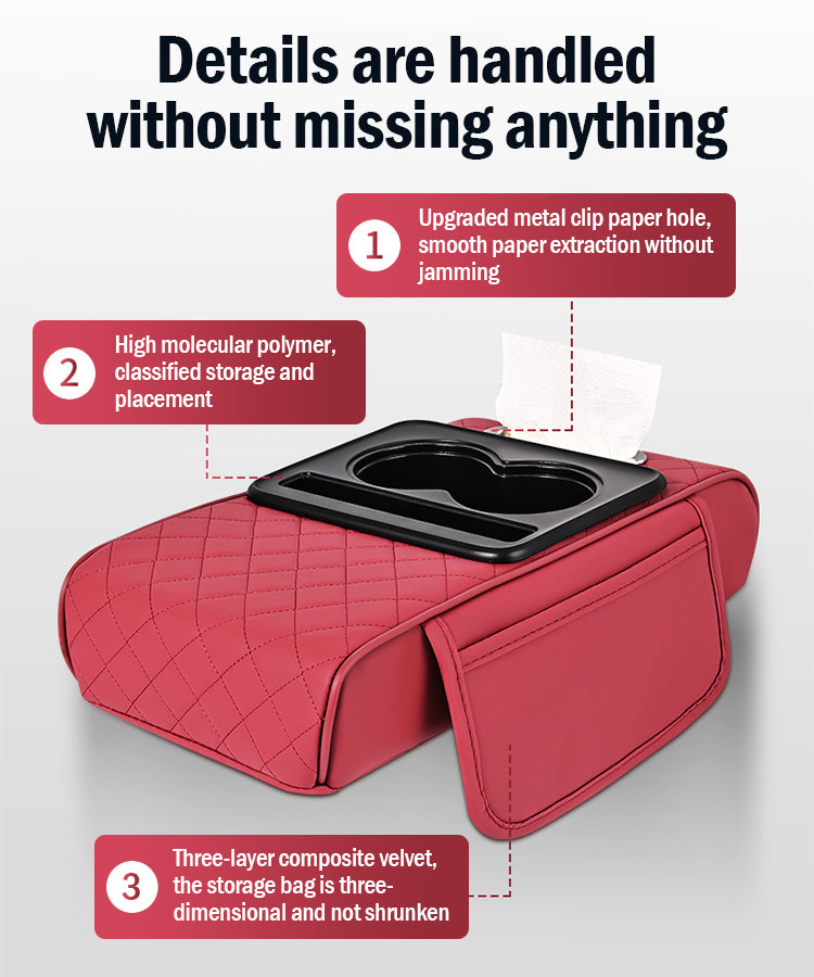 Универсална кожена подложка за подлакътник за кола 4 в 1 ✅ Вградена кутия за салфетки ✅ Поставка за чаши