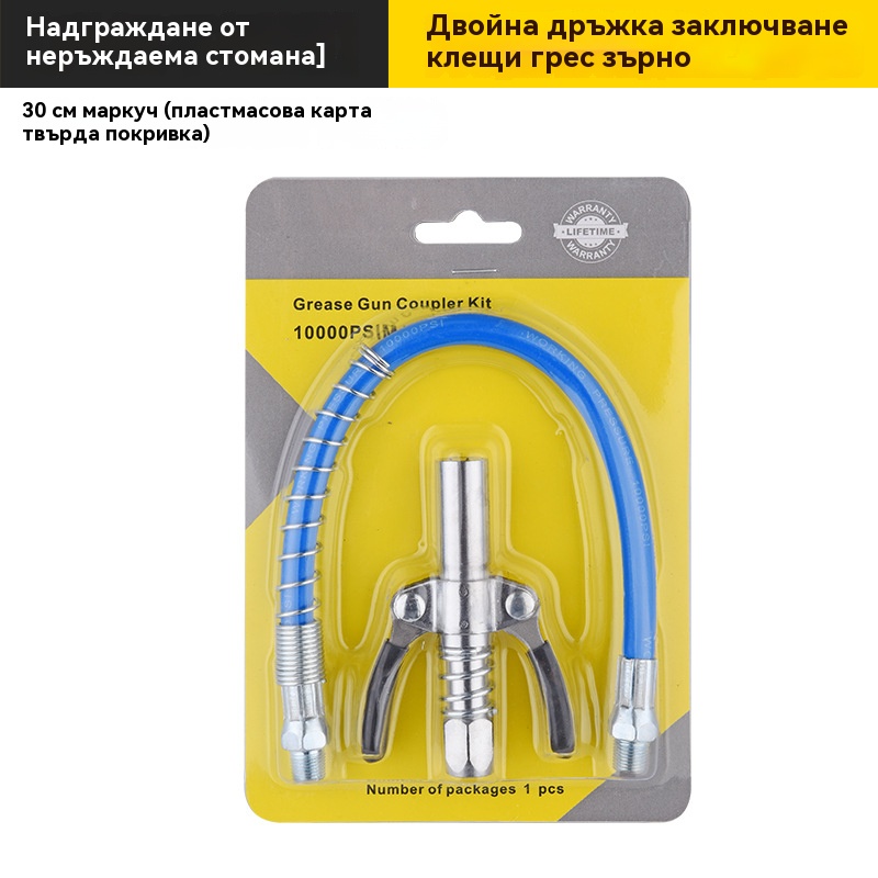 ⚒⚒【Двойна гресьорка + 30 см гъвкав маркуч】Самозаключващ се инжектор за грес с високо налягане тип скоба