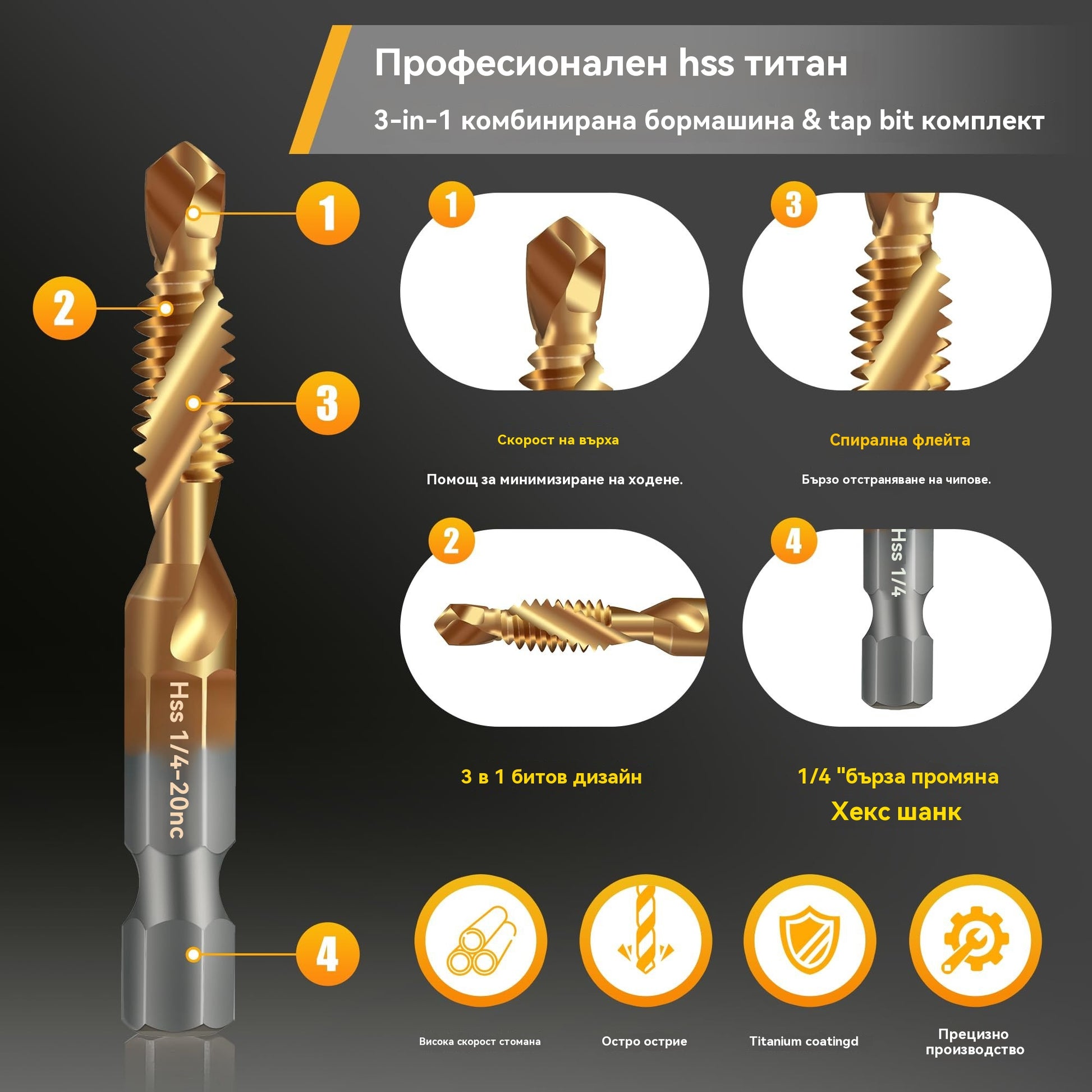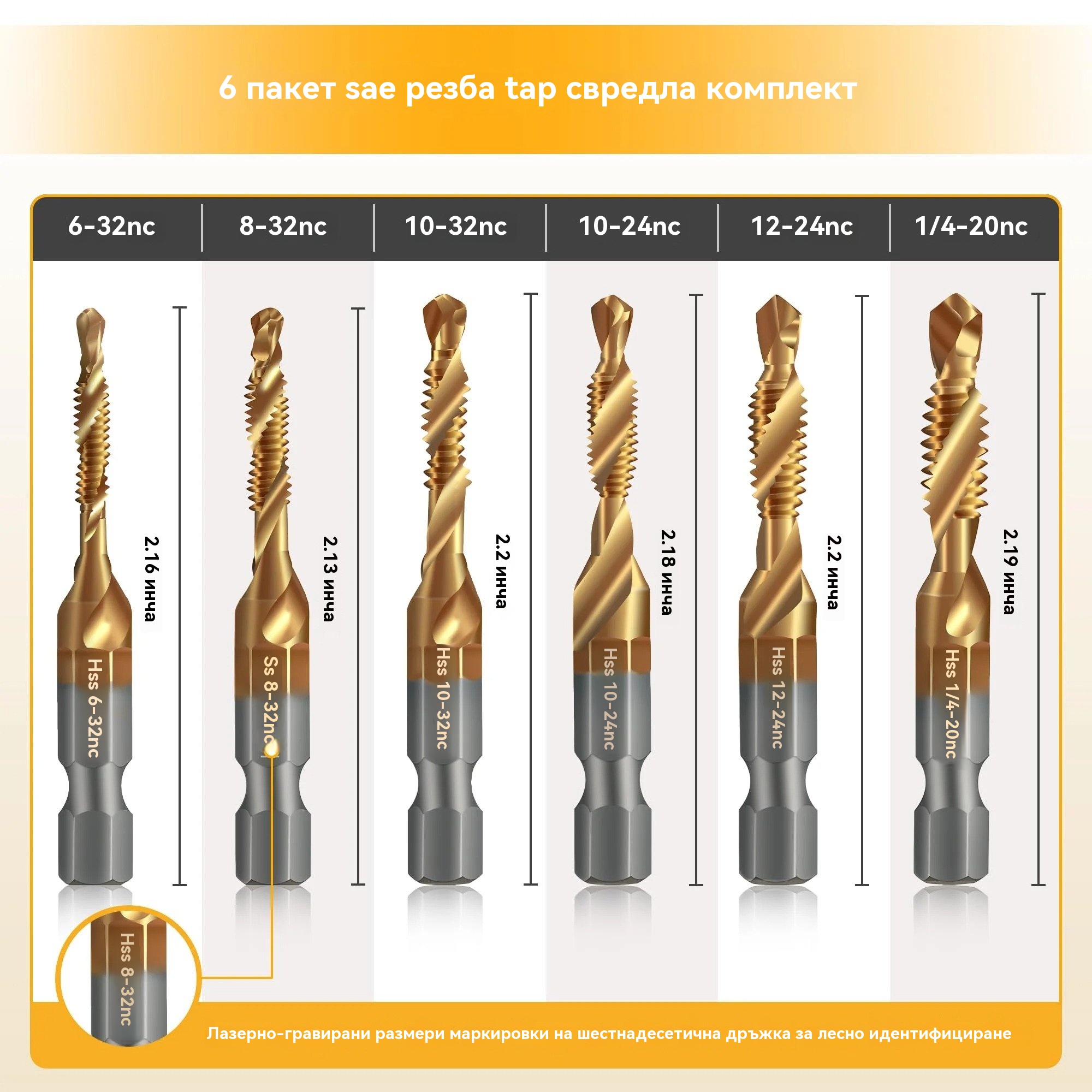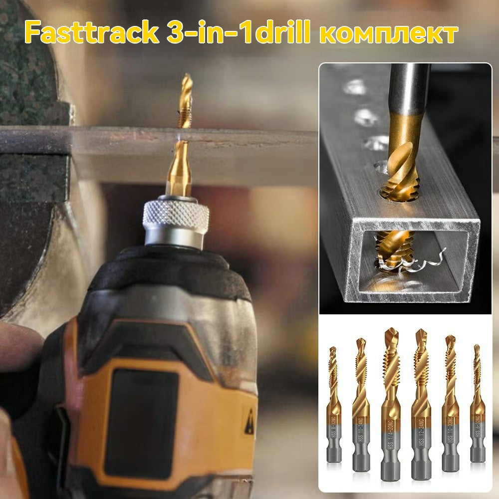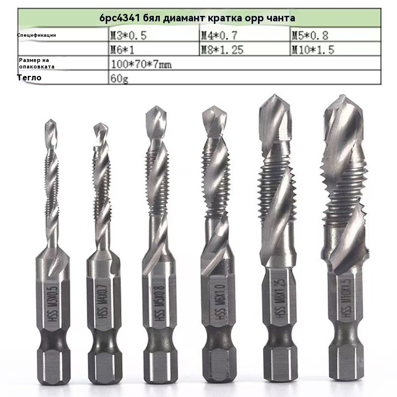 🔥🧰【Комплект от 6】Комплект свредла 3 в 1 със спираловиден метчик и шестоъгълна опашка