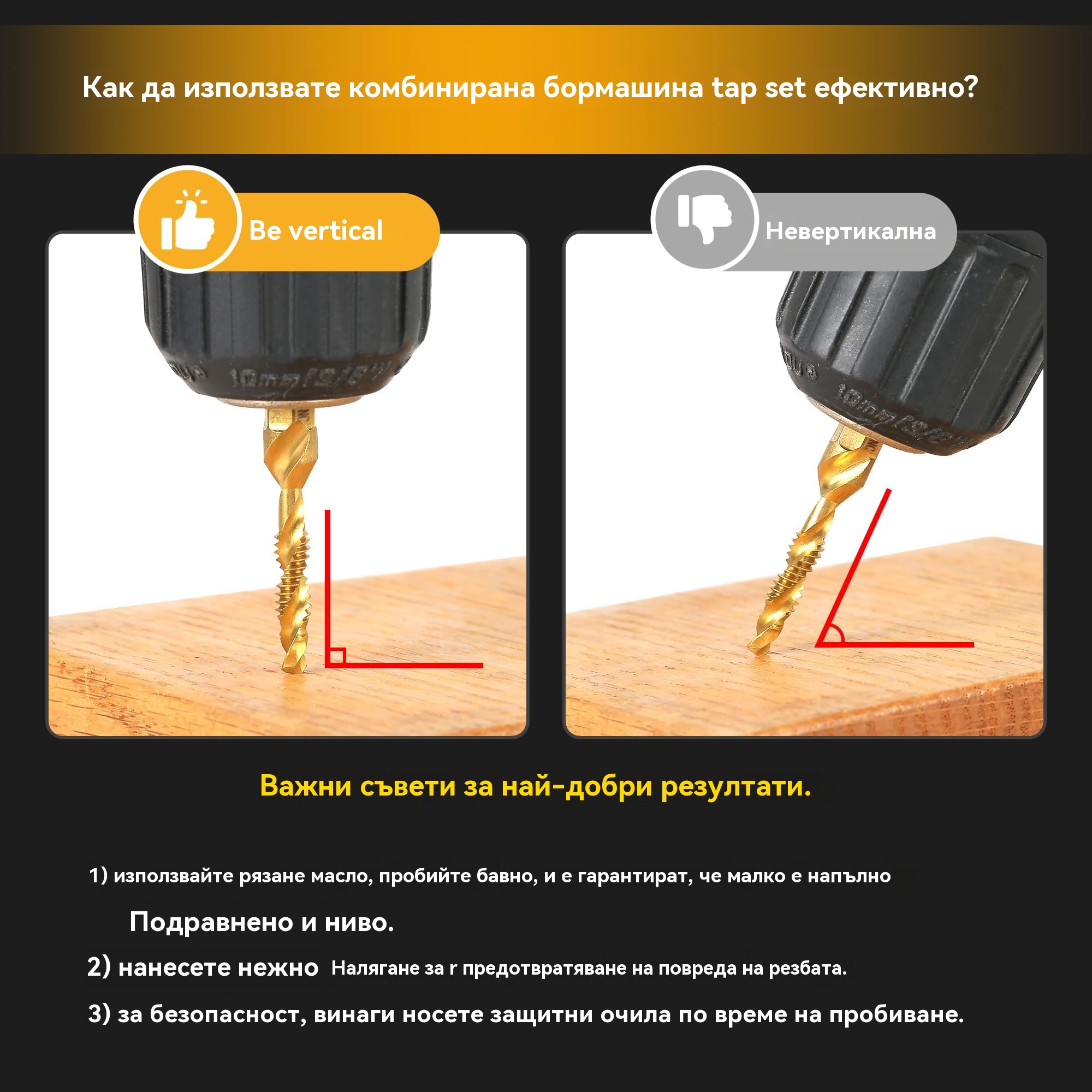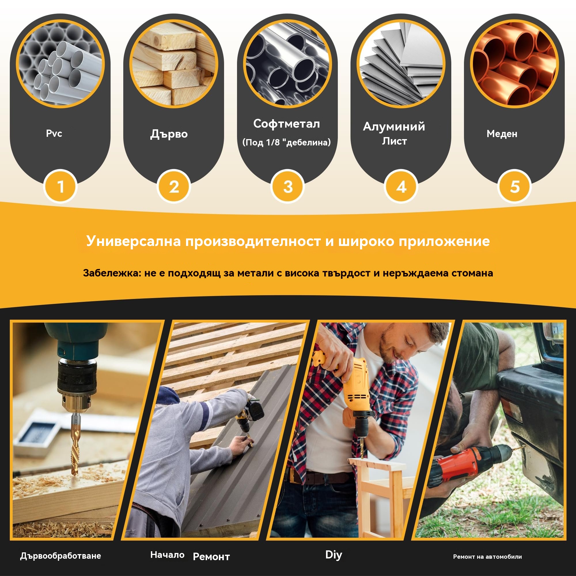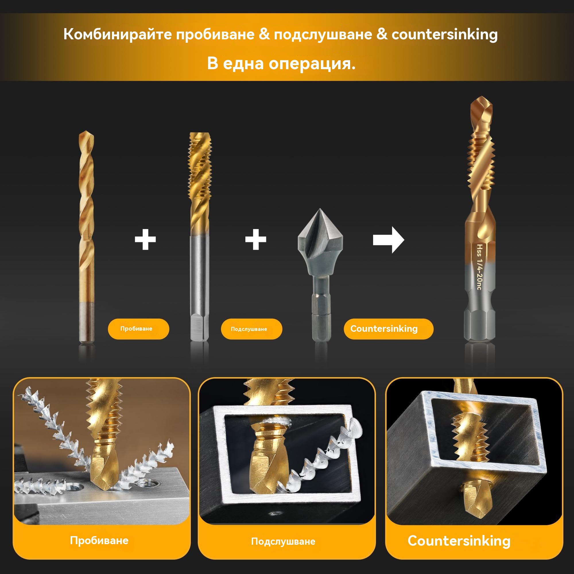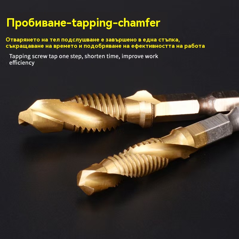 🔥🧰【Комплект от 6】Комплект свредла 3 в 1 със спираловиден метчик и шестоъгълна опашка