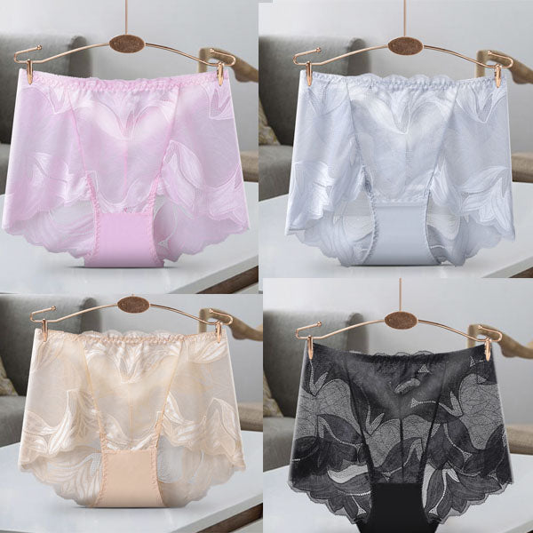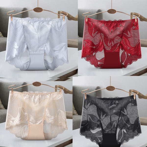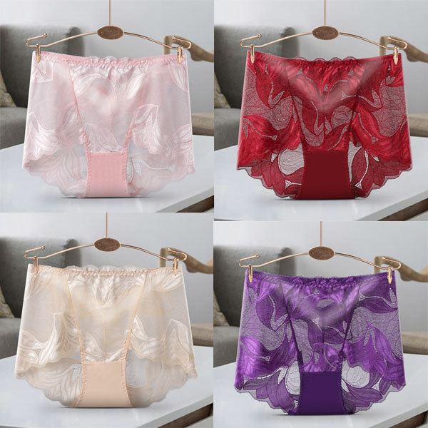 1 комплект/4 бр. Дамски бикини със средна талия, секси повдигащи бедрата, дишаща дантела от чист памук